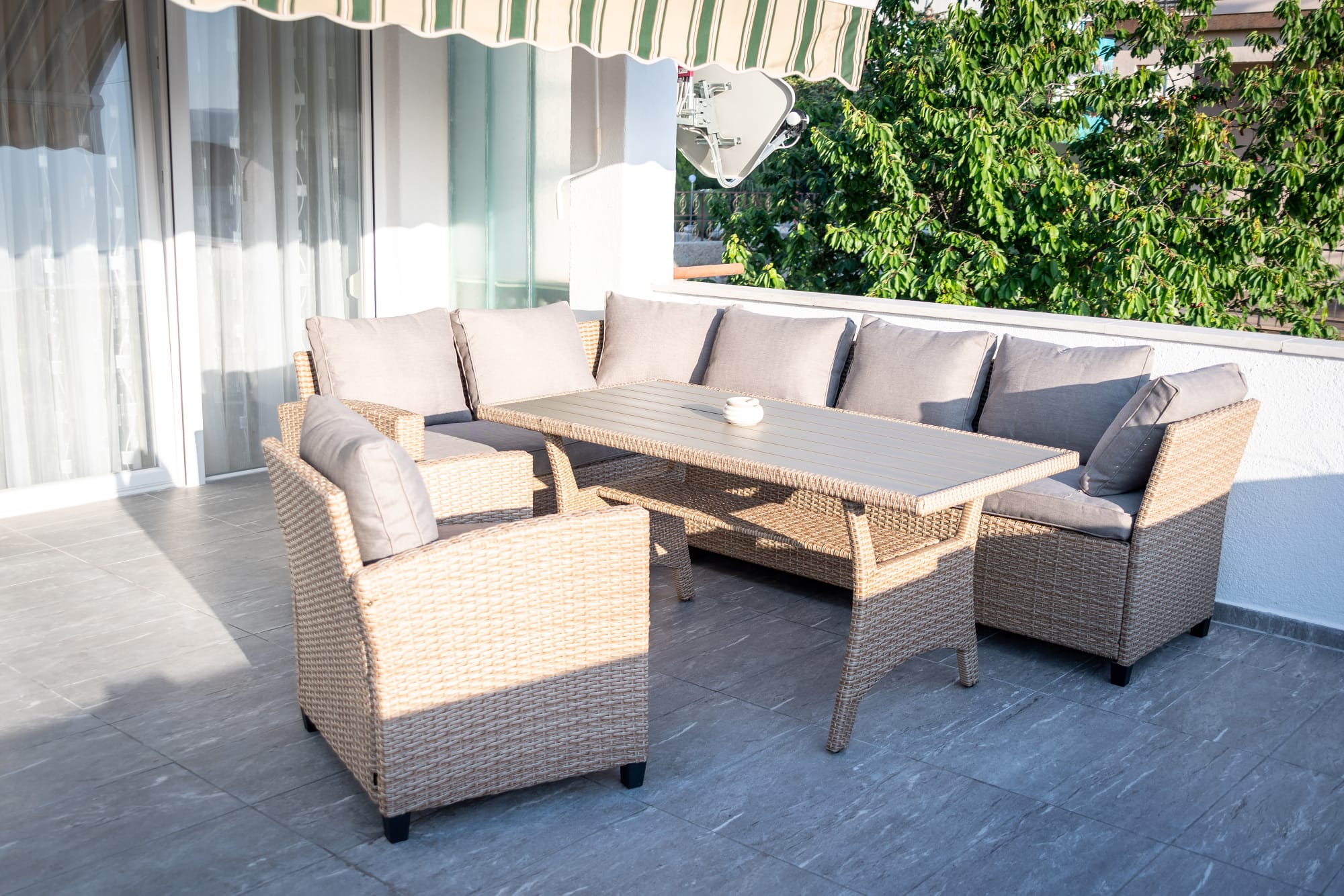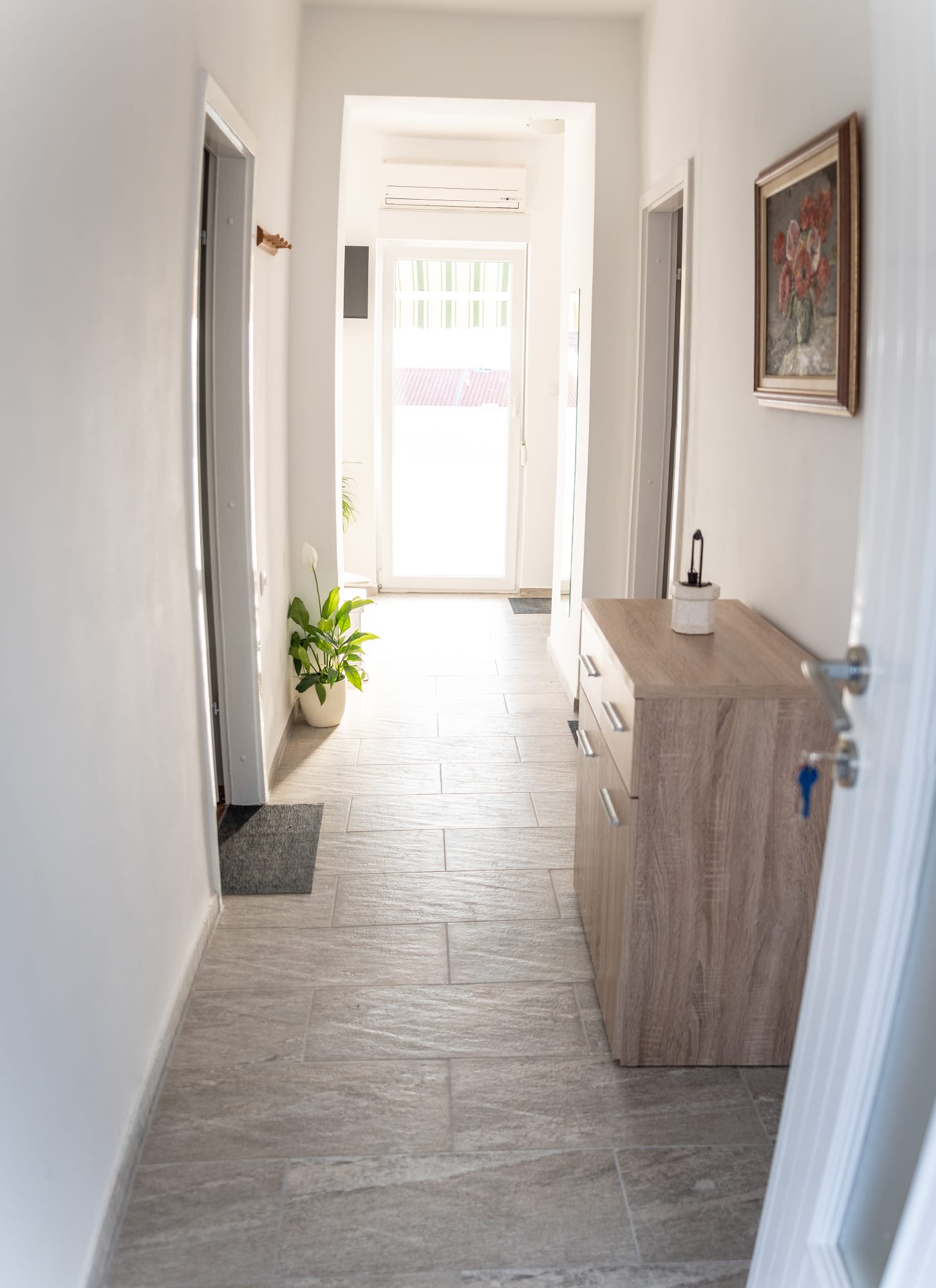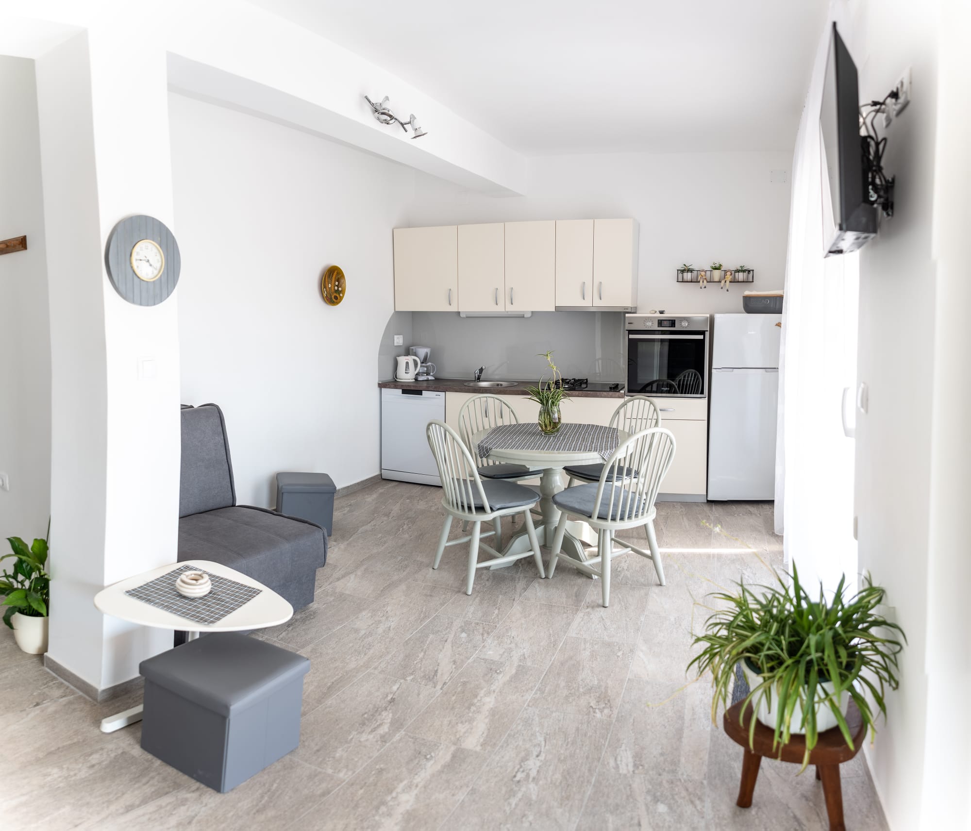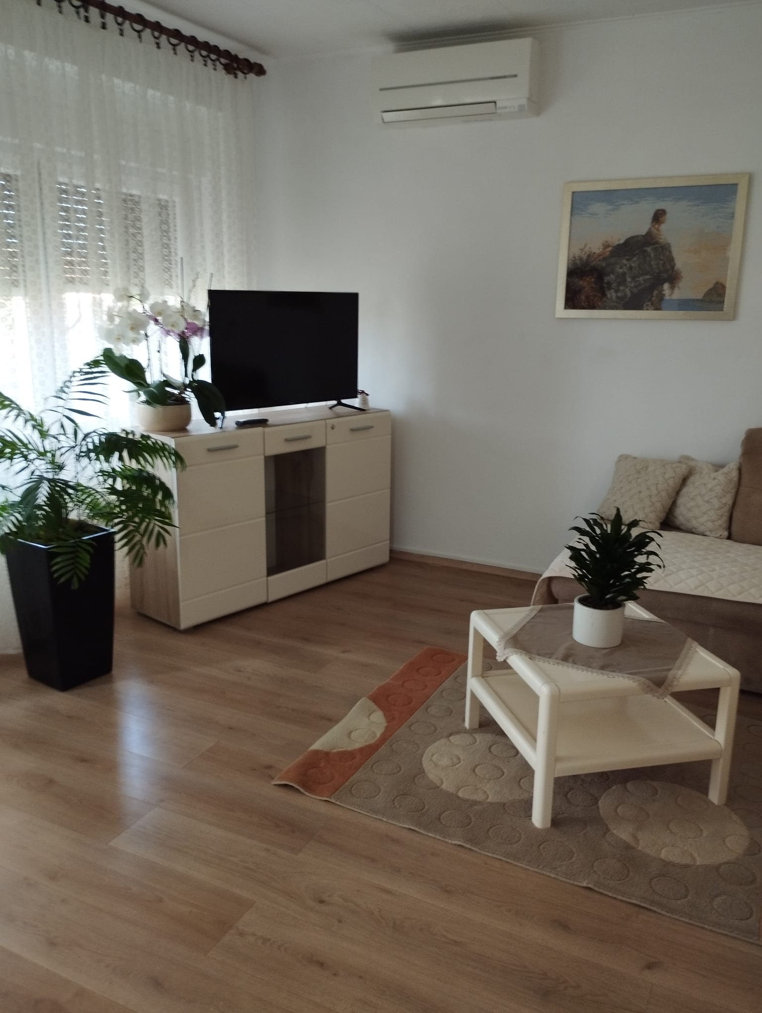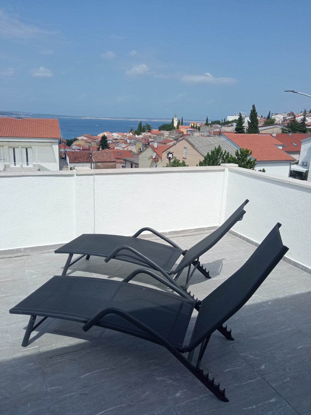 2.Etage, Klimaanlage, 2 Schlafzimmer mit Doppelbett, DU/WC, Waschmaschine, Wohnzimmer mit Küche und Esstisch,  Geschirrspüler, Mikrowelle, Kaffeemaschine, Wasserkocher, Sat-TV, Wi-Fi, Balkon mit Meerblick und DU/WC, Parkplatz im Hof