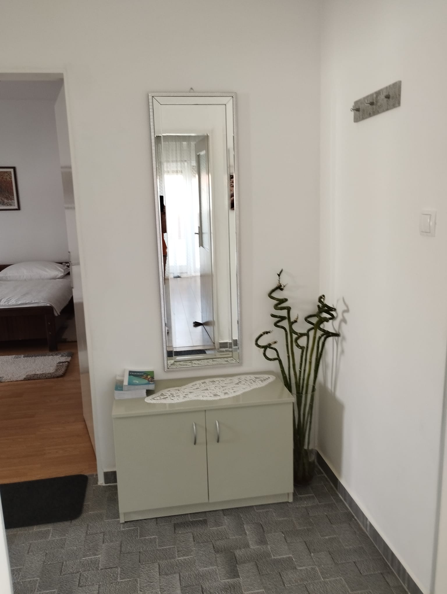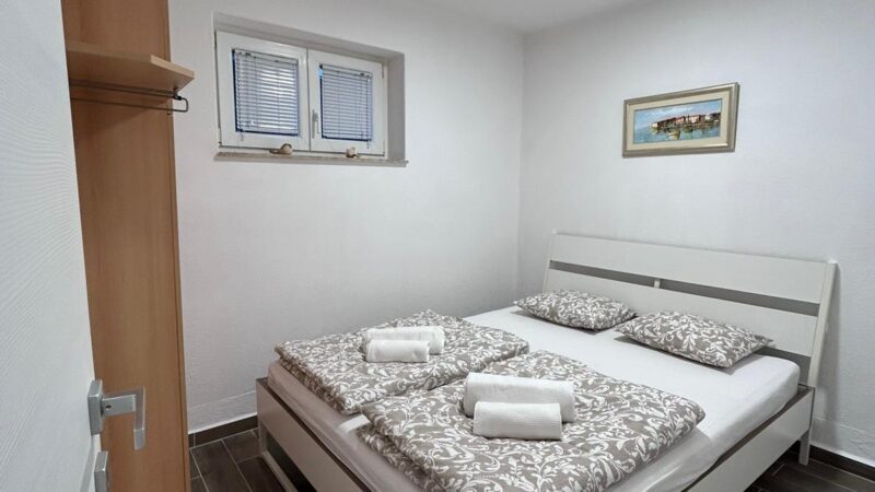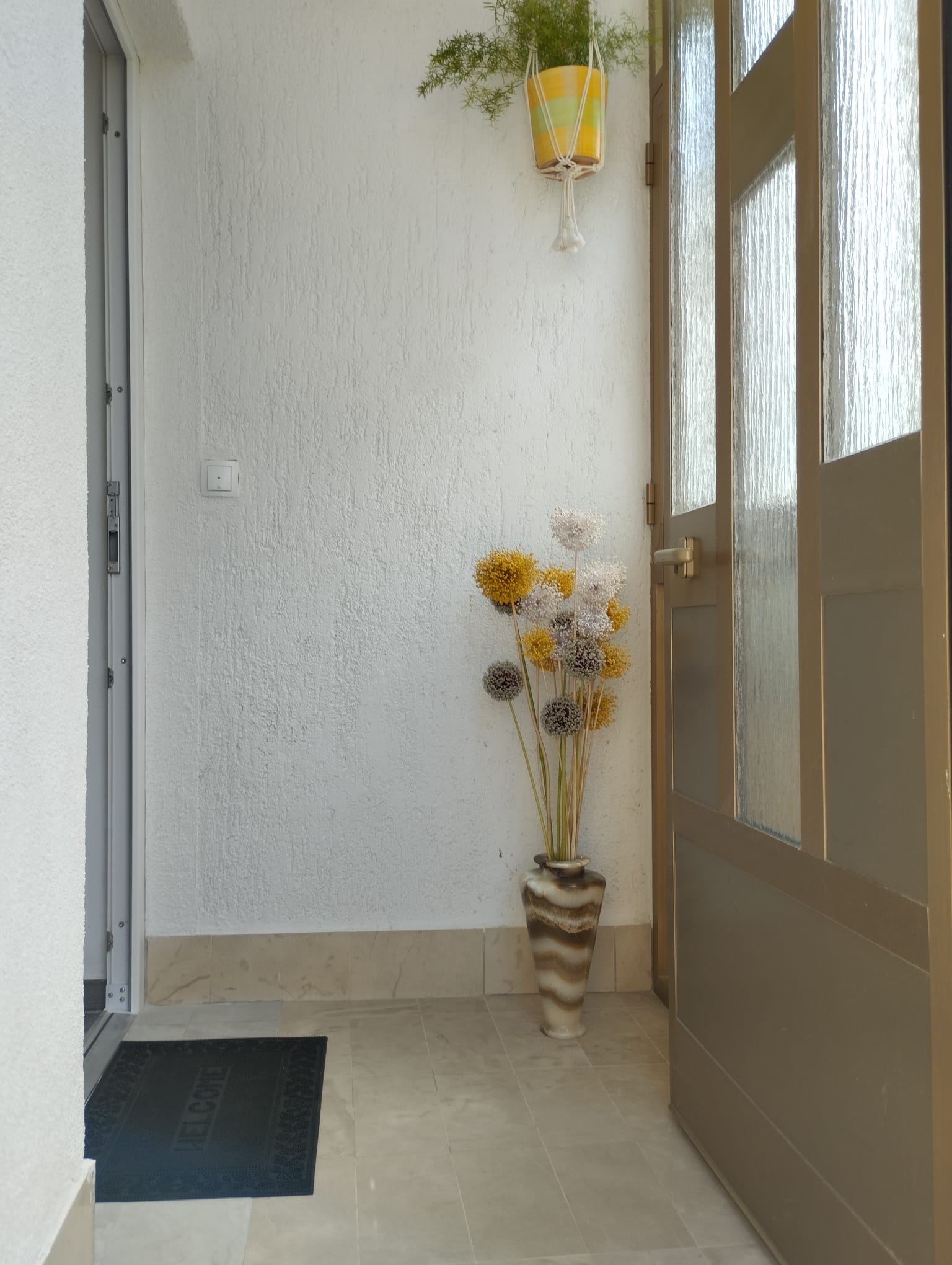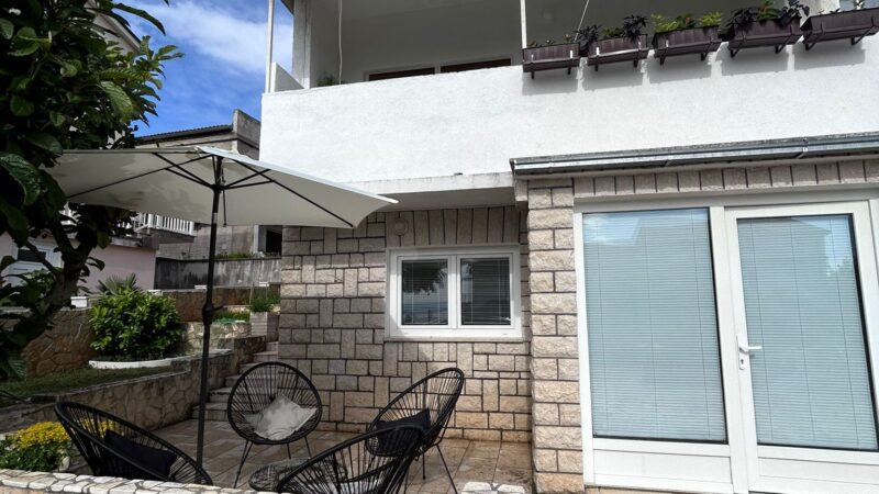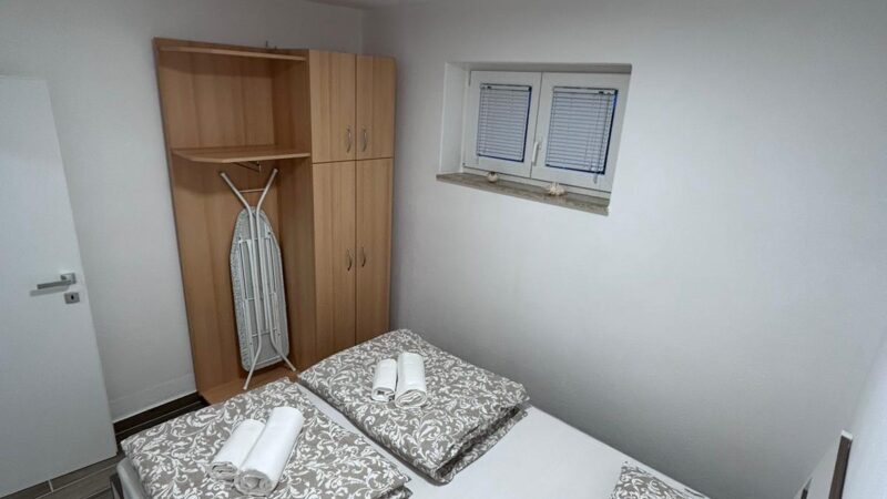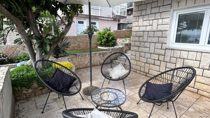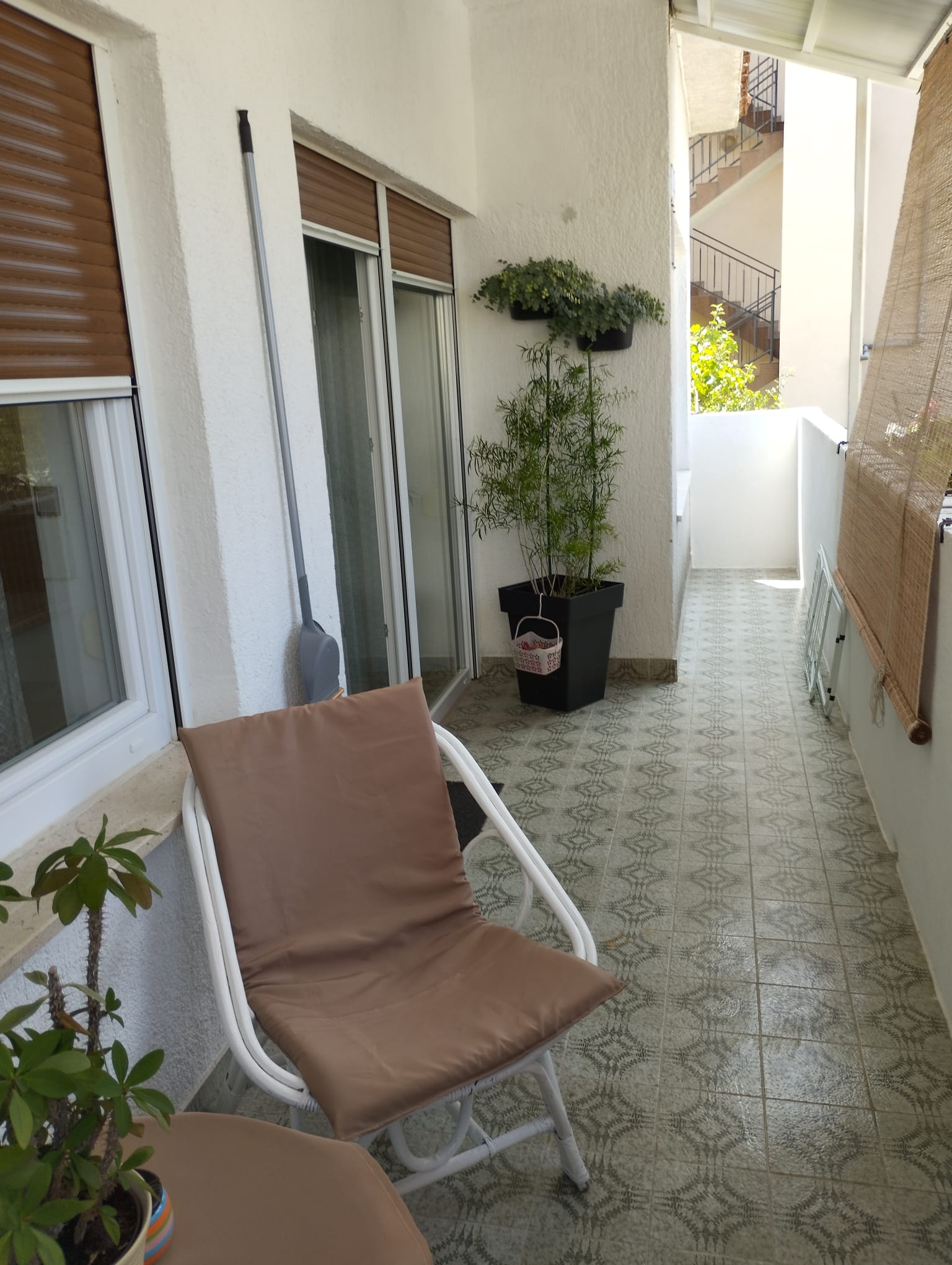 ground floor, 45m2, modern furniture, aircondition, 1 double bedroom, 1 single bedroom, shower/toilet, washing machine, livingroom with dining place, dishwasher, coffee machine, boiling kettle, Sat-TV, Wi-Fi, iron and ironing bord, terrace with seaview, parking in the yard