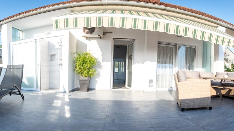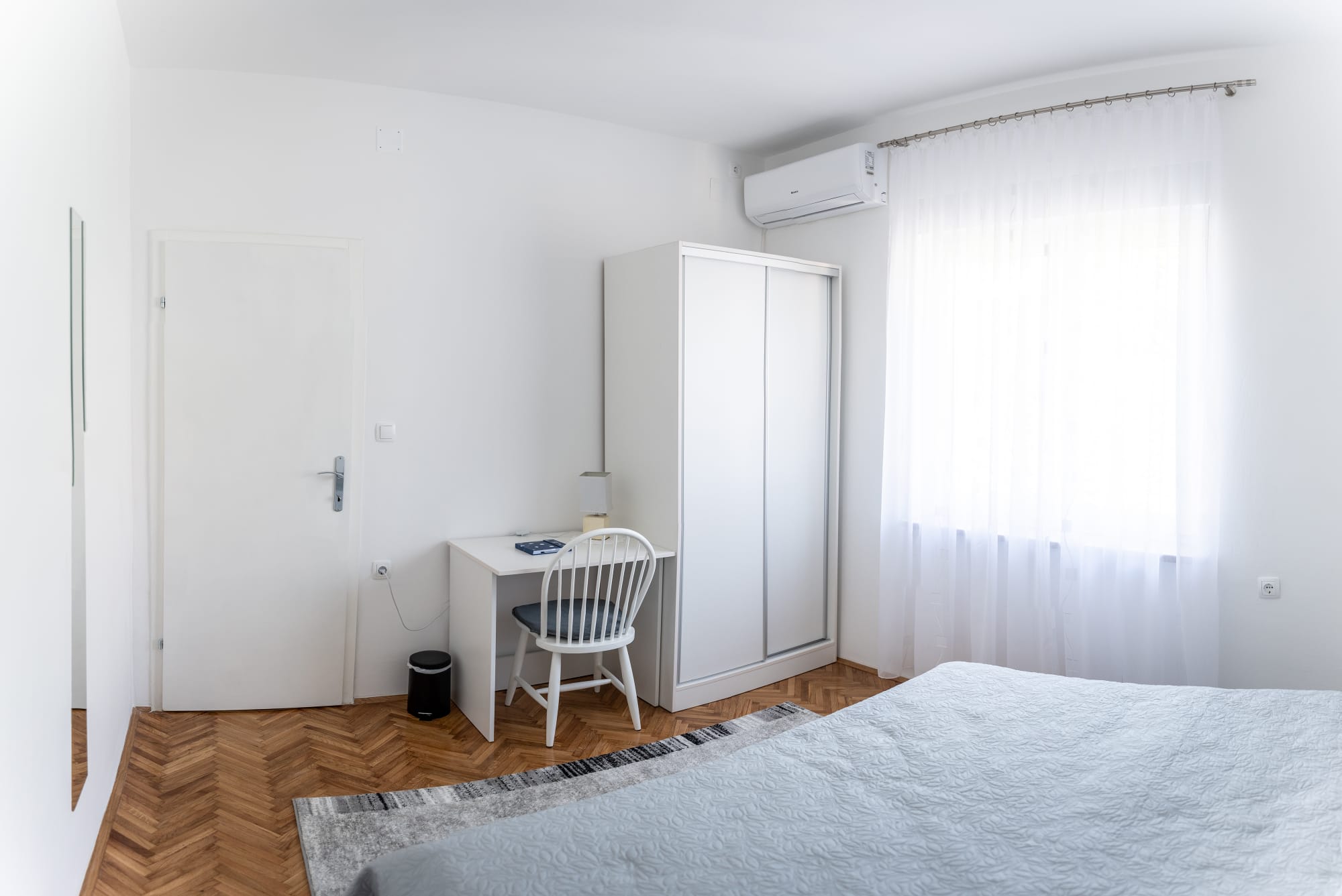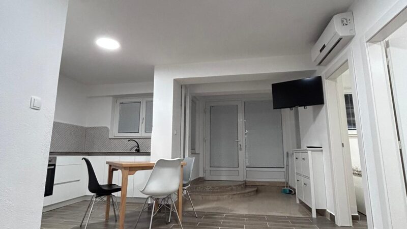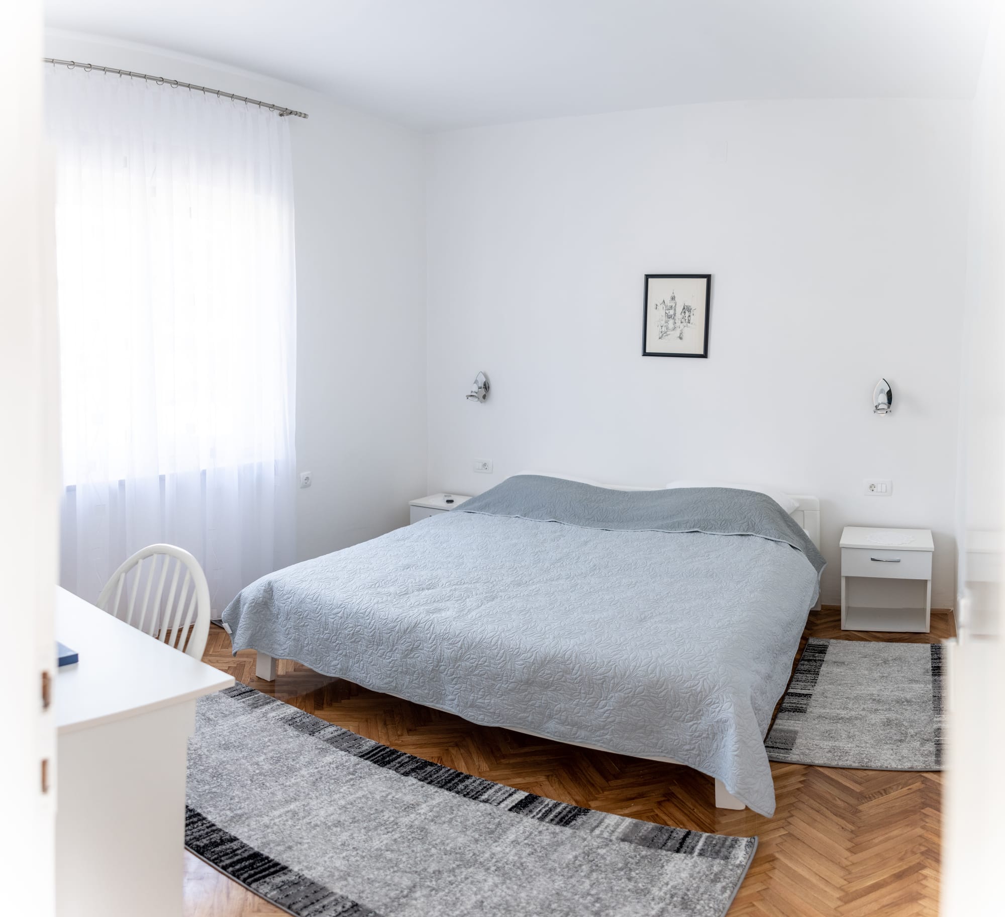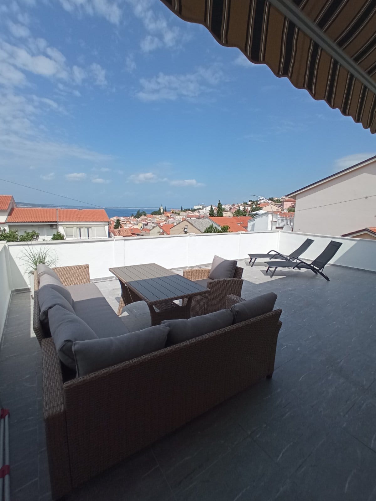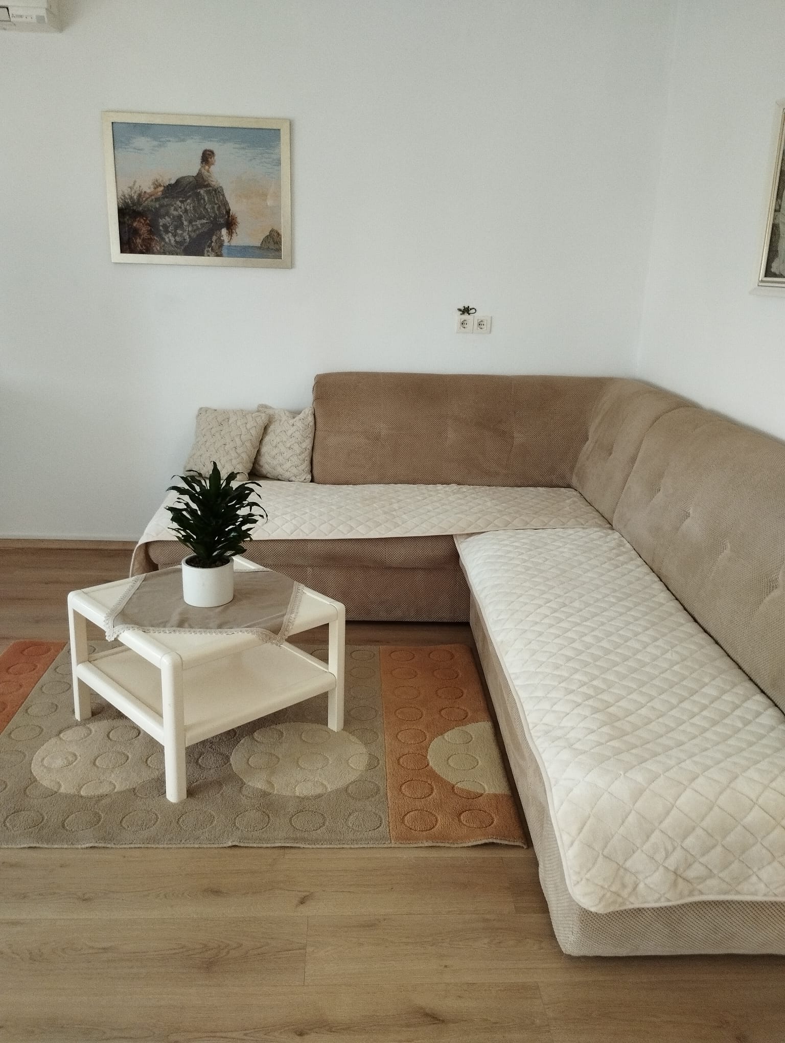 ground floor, 45m2, modern furniture, aircondition, 1 double bedroom, 1 single bedroom, shower/toilet, washing machine, livingroom with dining place, dishwasher, coffee machine, boiling kettle, Sat-TV, Wi-Fi, iron and ironing bord, terrace with seaview, parking in the yard