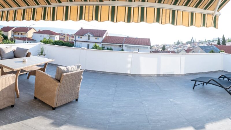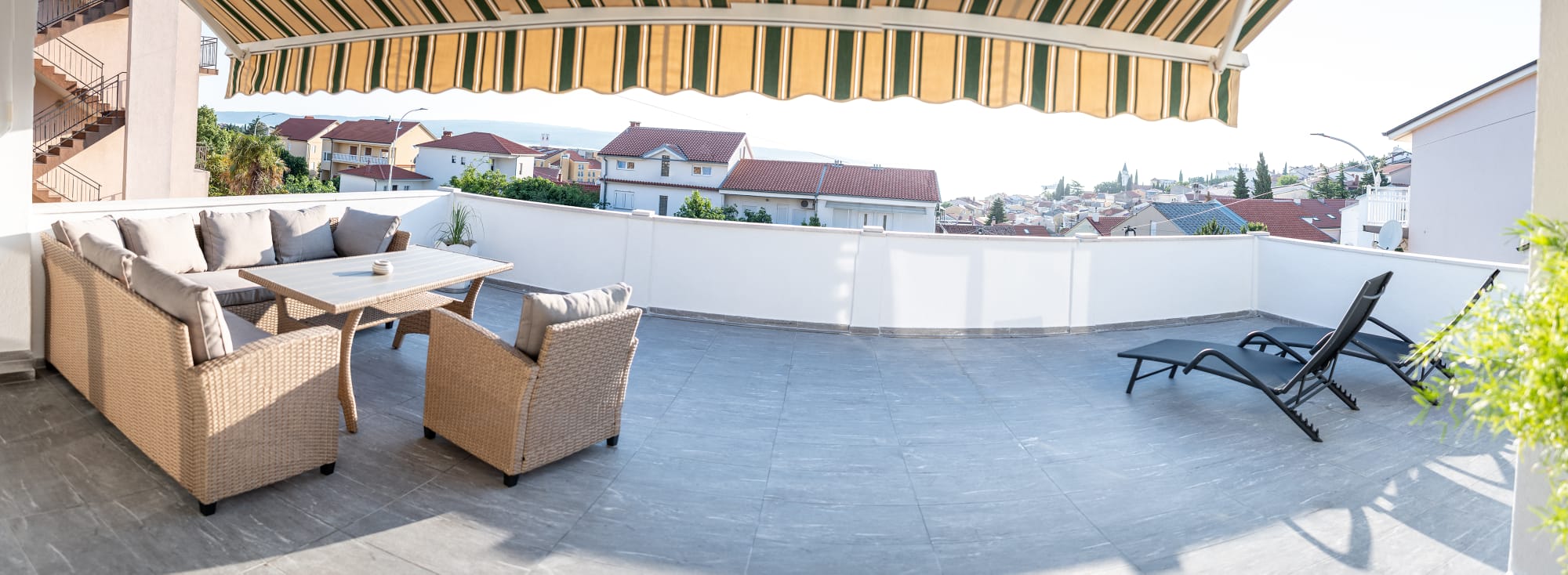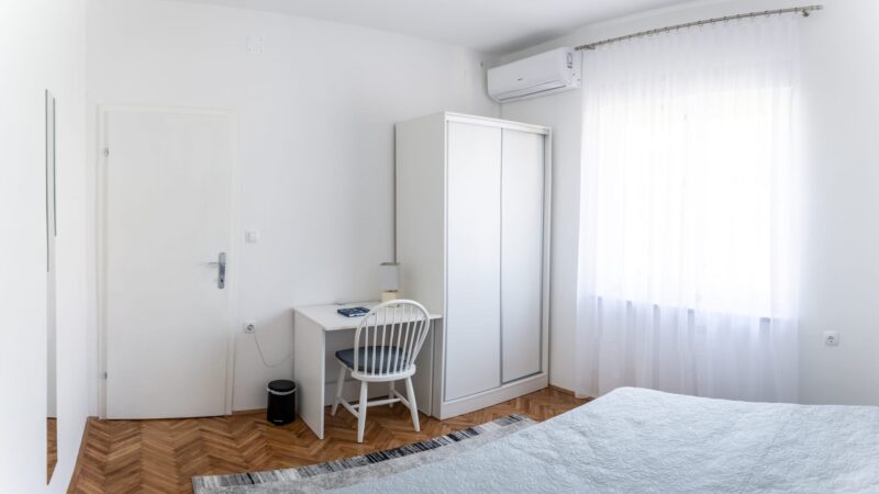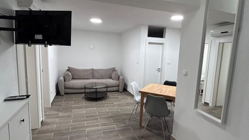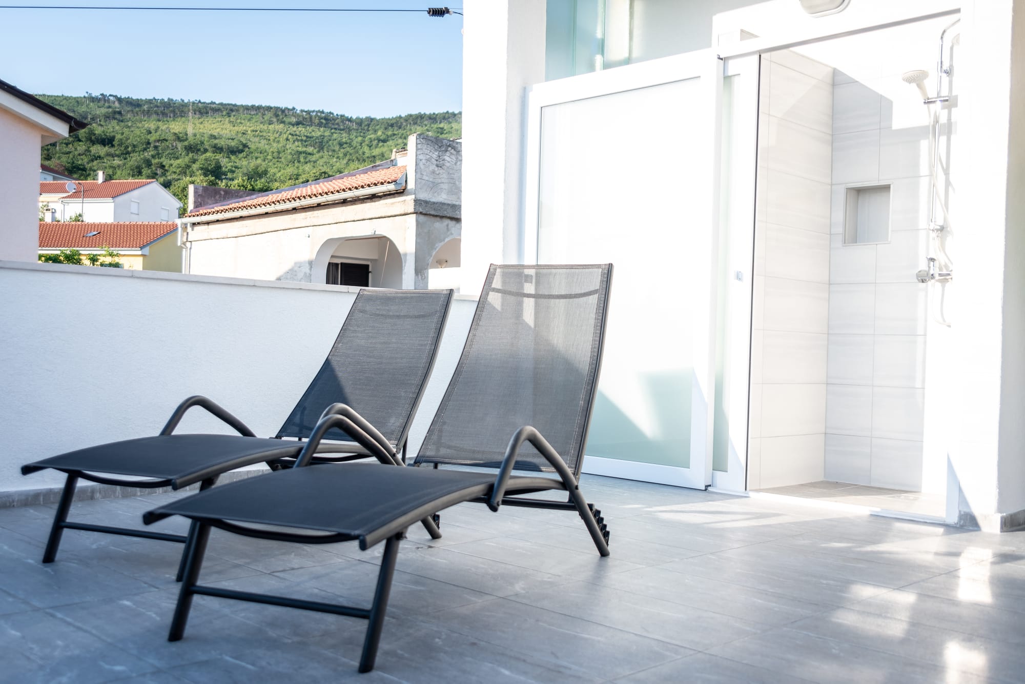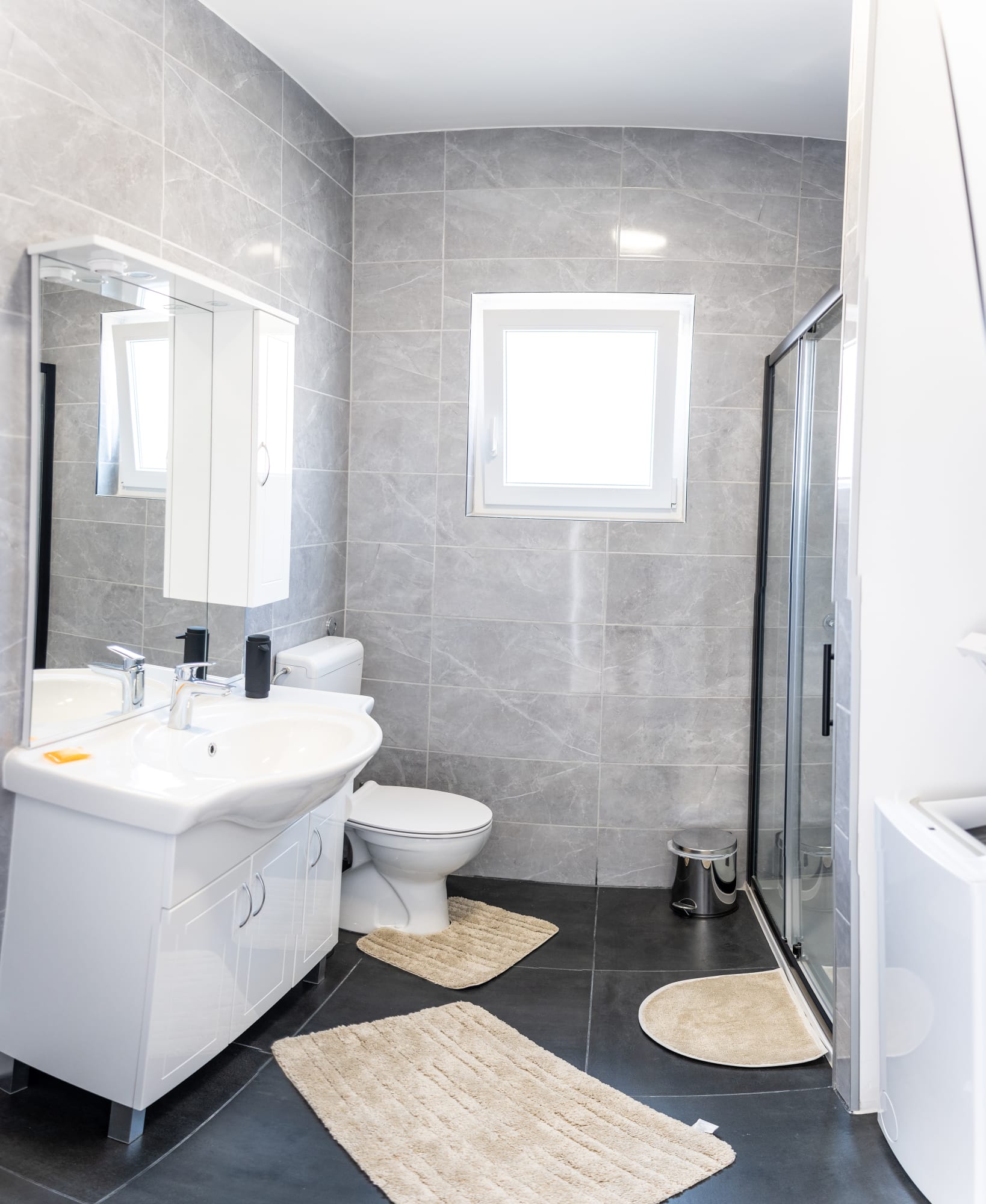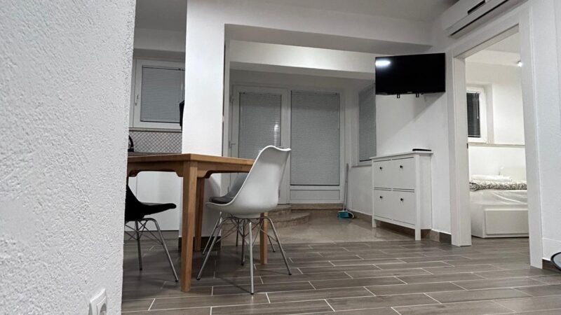 ground floor, 45m2, modern furniture, aircondition, 1 double bedroom, 1 single bedroom, shower/toilet, washing machine, livingroom with dining place, dishwasher, coffee machine, boiling kettle, Sat-TV, Wi-Fi, iron and ironing bord, terrace with seaview, parking in the yard